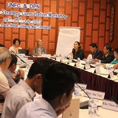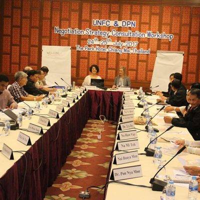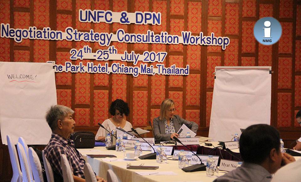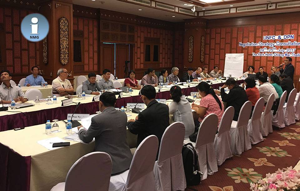 ညီညွတ်သော တိုင်းရင်းသား လူမျိုးများ ဖက်ဒရယ်ကောင်စီ UNFC ဗဟိုအလုပ်အမှုဆောင် ကော်မတီဝင်များနှင့် နိုင်ငံရေး ဆိုင်ရာ ဆွေးနွေးညှိနှိုင်းရေး ကိုယ်စားလှယ် DPN အဖွဲ့မှ ခေါင်းဆောင်များသည် ယနေ့ နံနက်ပိုင်းမှ စ၍ ထိုင်းနိုင်ငံ ချင်းမိုင်မြို့တွင် စေ့စပ်ညှိနှိုင်းရေးဆိုင်ရာ မဟာဗျူဟာ အလုပ်ရုံဆွေးနွေးပွဲတစ်ရပ်ကျင်းပနေသည်။ (၂၄/၇/၂၀၁၇)