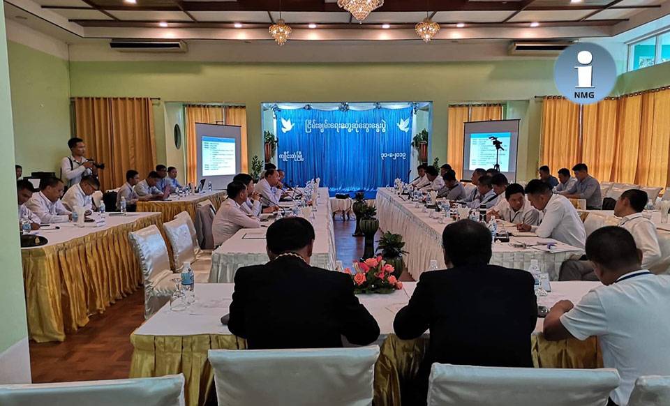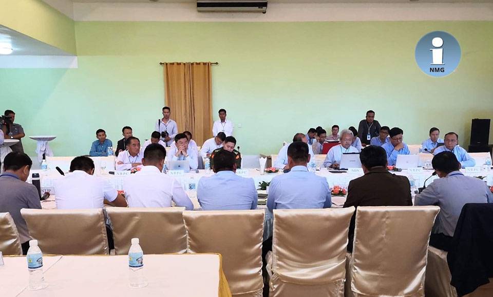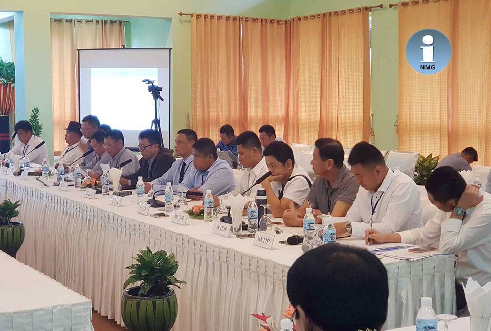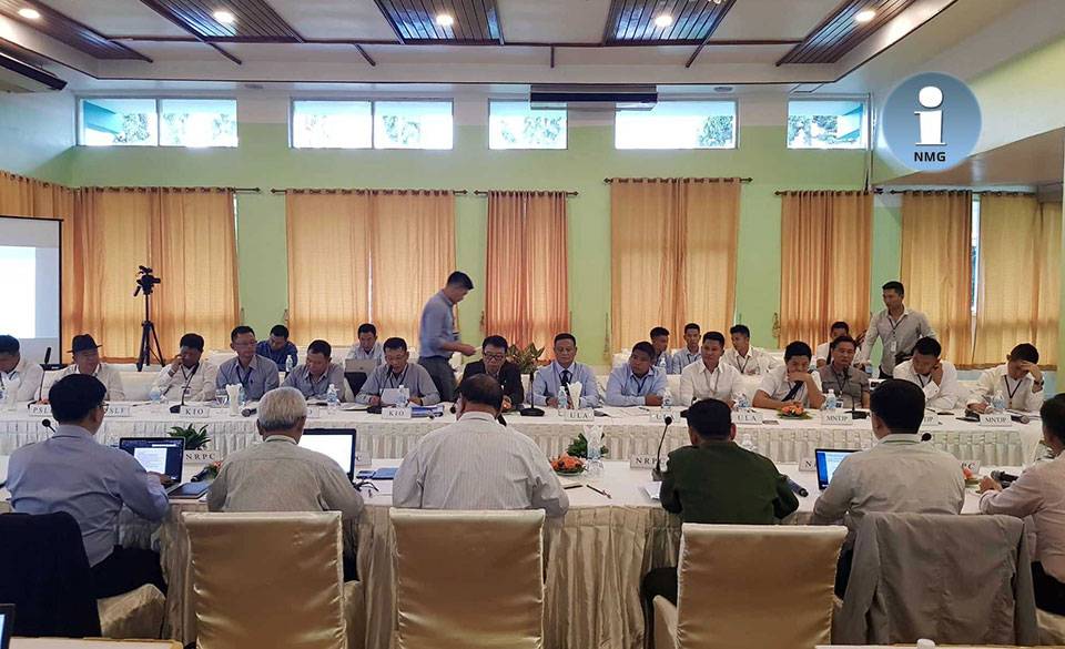 ငြိမ်းချမ်းရေး ဆွေးနွေးရန် အမျိုးသားပြန်လည်သင့်မြတ်ရေးနှင့် ငြိမ်းချမ်းရေးဗဟိုဌာန (NRPC) အဖွဲ့ နှင့် မြောက်ပိုင်း မဟာမိတ် ၄ ဖွဲ့မှ ခေါင်းဆောင်ကိုယ်စားလှယ်တို့ ရှမ်းပြည်နယ် ကျိုင်းတုံမြို့ရှိ Amazing Keng Tong Resort တွင် ယနေ့ နံနက် ၁၀ နာရီခန့်၌ အလွတ်သဘော တွေ့ဆုံဆွေးနွေး နေစဉ်။ (၃၁/၈/၂၀၁၉ )