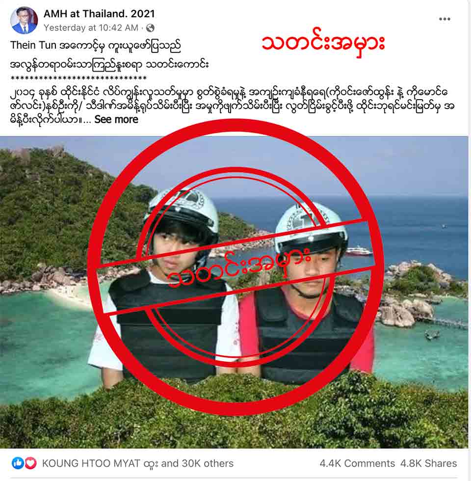 ဒါကြောင့် အချက်အလက်တွေကို ကြည့်လိုက်တဲ့အခါမှာ Thein Tun နဲ့ Kyaw Swar တို့က လက်ရှိ နိုင်ငံရေး အခြေအနေ ကိစ္စရပ်တွေကနေ ပြည်သူတွေကို အာရုံလွှဲသွားအောင်၊ စိတ်မဝင်စားအောင်၊ ရည်ရွယ်ချက်ရှိရှိနဲ့ ရေးတင်ထားတဲ့ သတင်းအမှားဖြစ်တယ်ဆိုတာကို တွေ့ရပါတယ်။