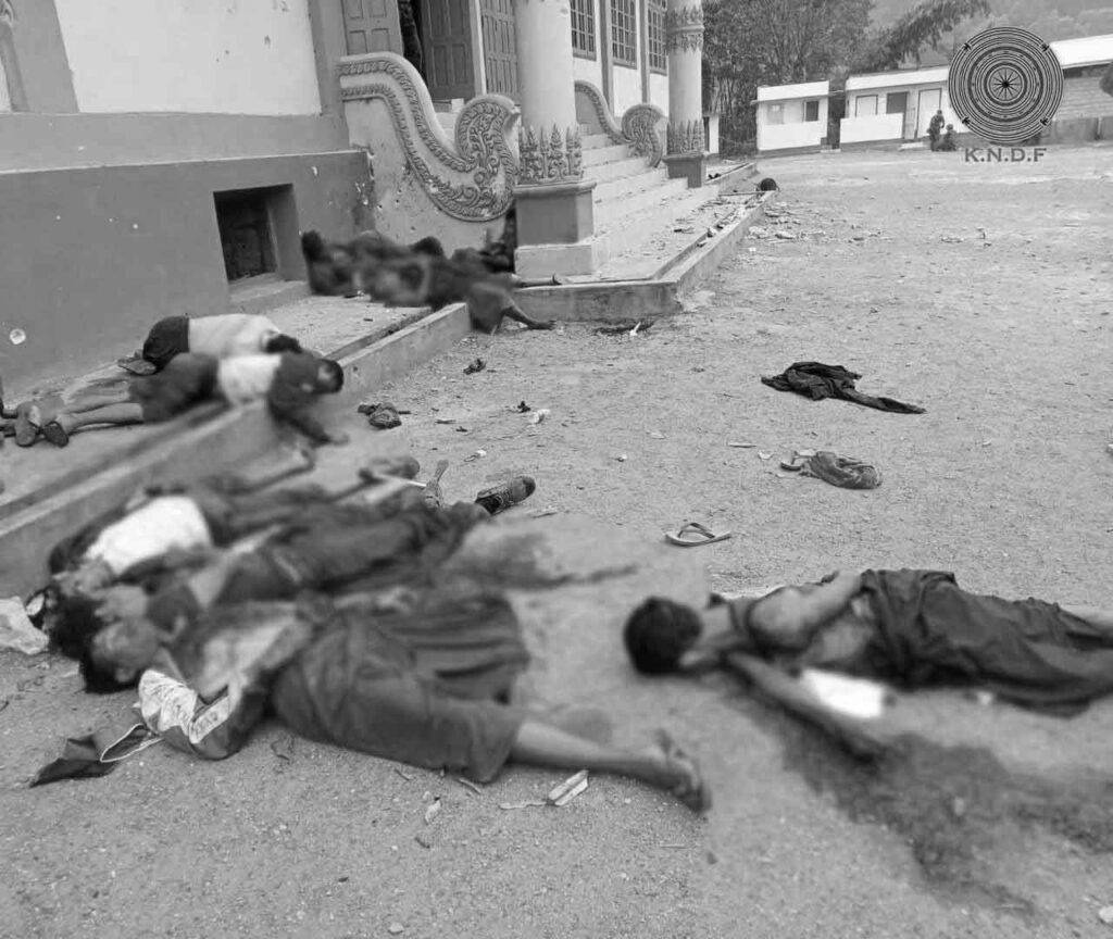 သံဃာတော်နှင့် ဒေသခံများကို စစ်တပ်က သတ်ဖြတ်ခဲ့ပေမယ့်လည်း စစ်တပ်ထောက်ခံသူများနှင့် အမျိုးသား အရေး လှုပ်ရှားသူများက ဒေသခံများနှင့် သံဃာတော်များကို ကရင်နီ လက်နက်ကိုင် အဖွဲ့အစည်းများက သတ် ဖြတ်ခဲ့တယ်ဆိုပြီး လူမှုကွန်ရက် စာမျက်နှာများတွင် လူမျိုးရေး ဘာသာရေး ပဋိပက္ခဖြစ်အောင် ပြောဆို ရေး သား လှုံ့ဆော်မှုများကို ပြုလုပ်လာခဲ့ကြသည်။