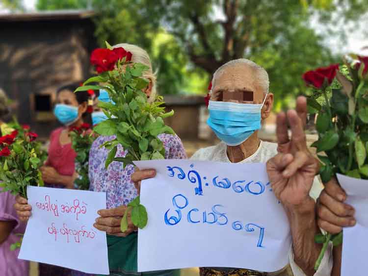 ဇွန်လ ၁၉ ရက်နေ့မှာ ကျရောက်တဲ့ နိုင်ငံတော်အတိုင်ပင်ခံပုဂ္ဂိုလ် ဒေါ်အောင်ဆန်းစုကြည်ရဲ့ မွေးနေ့ကို ဂုဏ်ပြု တဲ့ အနေနဲ့ ပန်းသပိတ်လုပ်ကြဖို့ တော်လှန်ရေးအင်အားစုများက တိုက်တွန်းပြောဆိုထားရာ အဲ့ဒီနေ့မှာ ပန်းပန် ထားသူတွေ၊ ပန်းကိုင်ပြီး သွားလာခဲ့သူတွေ၊ ပန်းရောင်းတဲ့သူတွေအပြင် ပန်းပျိုးပင် ဝေပေး သူတွေကိုပါ စစ်တပ် က ဖမ်းဆီးခဲ့ပါတယ်။