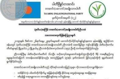 Ta’ang Party Calls For Inclusive Political Dialogue, End to Fighting By NETWORK MEDIA GROUP (NMG) Tuesday, December 31, 2019 The Ta’ang National Party…