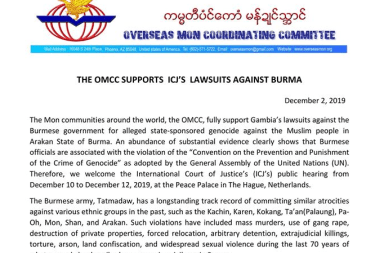 Mon Community Abroad Voices Support of ICJ Prosecution of Burma By NETWORK MEDIA GROUP (NMG) Friday, December 6, 2019 Organizations representing the e…
