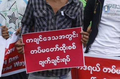 ငြိမ်းစုစီ ဥပဒေနှင့် ညီညွတ်မှု မရှိ၍ ပိတ်ပင်ခံလိုက်ရသည့် ကချင်ဒေသတွင်းက ထိုးစစ်ဆင်မှု ရပ်တန့်ရေး လူထုဆန့်ကျင် လမ်းလျှောက် ဆန္ဒထုတ်ဖော်ခြင်း အစီအစဉ်ကို …