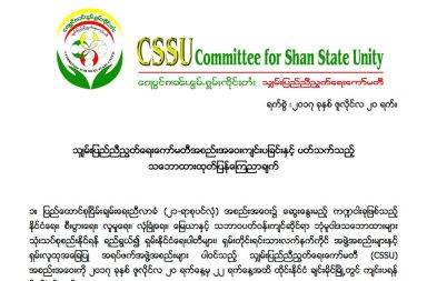 တားမြစ်ခံရသည့် ရှမ်းပြည်ညီညွတ်ရေးကော်မတီ CSSU အစည်းအဝေးနှင့်ပတ်သက်၍ သဘောထား ထုတ်ပြန် …