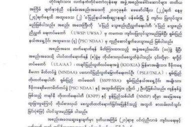 တိုင်းရင်းသား လက်နက်ကိုင် တော်လှန်ရေး အဖွဲ့အစည်းခေါင်းဆောင်များ၏ တတိယအကြိမ် မျက်နှာစုံညီ ပန်ခမ်းအစည်းအဝေး ထုတ်ပြန်ကြေညာချက် …