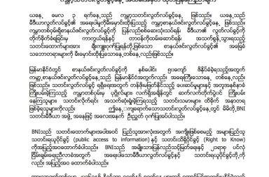 ဒီကနေ့ကျရောက်သော World Press Freedom Day 2017 အခမ်းအနားတွင် BNI အဖွဲ့မှ ထုတ်ပြန်ချက် …
