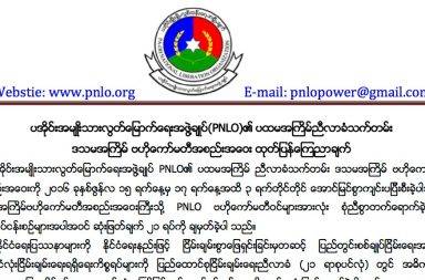 ပအိုဝ်းအမျိုးသားလွတ်မြောက်ရေးအဖွဲ့ချုပ် PNLO၏ ပထမအကြိမ်ညီလာခံတက်တမ်း ဒသမ အကြိမ် ဗဟိုကော်မတီအစည်းအဝေး ထုတ်ပြန်ကြေညာချက် …